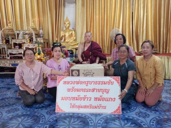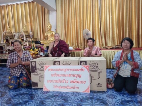 ผู้สื่อข่าวรายงานว่าครูบาธรรมชัย เจ้าอาวาสวัดศรีพันต้น สำนักสงฆ์ปฏิบัติธรรมชัย จังหวัดน่านและ สำนักปฏิบัติธรรม ธรรมชัย แผ่นดินทอง อำเภอ หนองเสือ จังหวัดปทุมธานี ได้แจกหม้อข้าวหม้อแกง เพื่อให้สตรีแม่บ้านในเขตชุมชนได้ใช้ เพราะหม้อเป็นกิจวัตรที่สตรีแม่บ้านจะต้องใช้เป็นประจำ บางวัดบางกลุ่มสตรีแม่บ้านไม่มีปัจจัยซื้อตามชนบท หลวงพ่อครูบาธรรมชัย(กล่าวว่า)ท่านเล็งเห็นว่า