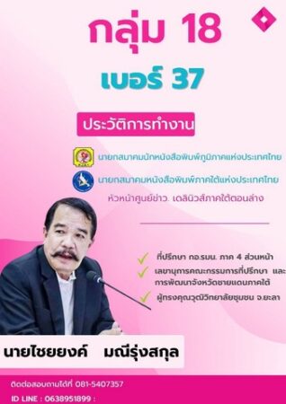 วันนี้ 27 มิถุนายน 2567 รายงานจากสมาคมหนังสือพิมพ์ภาคใต้แห่งประเทศไทย ( สนต.) อ.หาดใหญ่ จ.สงขลา ว่ามีสมาชิกสมาคมหนังสือพิมพ์ภาคใต้ และ สมาคมนักหนังสือพิมพ์ภูมิภาคแห่งประเทศไทย(สนพท.)หลายร้อยคนได้ร่วมแสดงความยินดีกับนายไชยยงค์ มณีรุ่งสกุล นายกสมาคมฯทั้ง 2 สมาคมฯ ที่ได้รับความไว้วางใจด้วยการเลือกเป็นว่าที่สมาชิกวุฒิสภา (สว.)ซึ่งมีเพื่อนร่วมวิชาชีพสื่อสารมวลชนในกลุ่ม 18 อีก 9 คน