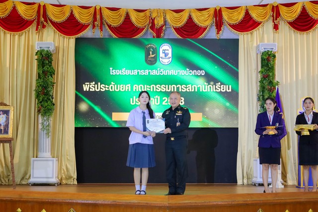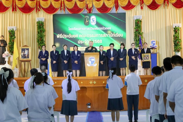 โรงเรียนสารสาสน์วิเทศบางบัวทอง จัดพิธีประดับยศคณะกรรมการสภานักเรียน ประจำปีการศึกษา 2568 อย่างสมเกียรติ เมื่อวันที่ 16 กรกฎาคม 2568 ณ อาคารหอประชุมโดม โดยมี พล.ต. พิพัฒน์ จงวัฒนาไพศาล ผู้อำนวยการสำนักกิจการพลเรือน กรมกิจการพลเรือนทหารบก ให้เกียรติเป็น ประธานในพิธี และกล่าวให้โอวาทแก่เยาวชนผู้นำรุ่นใหม่