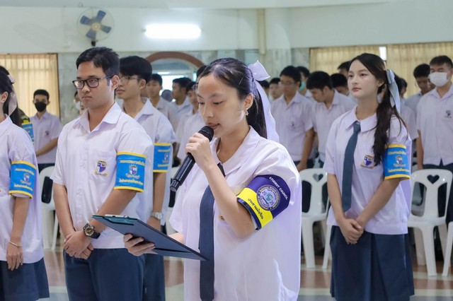 พิธีเริ่มต้นอย่างสง่างามด้วยการเดินเข้าสู่บริเวณพิธีของคณะกรรมการสภานักเรียนภายใต้สายตาของผู้บริหาร ครู ผู้ปกครอง และนักเรียนระดับมัธยมศึกษา บรรยากาศเต็มไปด้วยความภาคภูมิใจและความตื่นเต้น โดยมีการประกอบพิธีตามลำดับอย่างเป็นทางการ ตั้งแต่การกล่าวรายงานโดยผู้บริหารโรงเรียน การมอบปลอกแขนแห่งเกีรติยศ ตลอดจนคำปฏิญาณตนของคณะกรรมการสภานักเรียน เพื่อแสดงถึงความตั้งใจในการปฏิบัติหน้าที่ด้วยความซื่อสัตย์ รับผิดชอบ และเป็นแบบอย่างที่ดีแก่เพื่อนนักเรียน