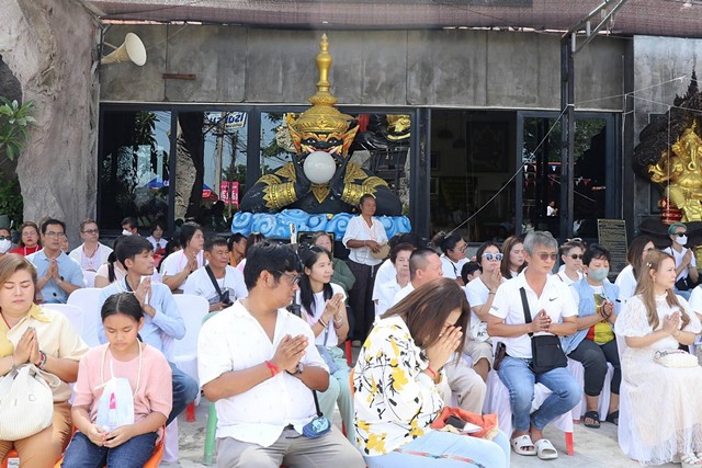 ทั้งนี้ “หลวงตาม้า” วัดถ้ำเมืองนะ ท่านเมตตาเดินทางมาเป็นประธานพิธีฝ่ายสงฆ์ นั่งอธิษฐานจิตลงแผ่นทอง และ ธาตุวัตถุมงคลต่างๆ พร้อมคณะสงฆ์ที่ติดตามมา หลายรูป และ พระครูเกษมถาวรคุณ เจ้าอาวาสวัดบางเลน ร่วมพระสงฆ์ 9 รูป สวดเจริญพุทธมนต์ ชยันโต”ชัยชนะจงบังเกิด” ตลอดพิธีเททอง จนแล้วเสร็จ…