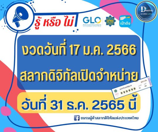 📣📣 รู้หรือไม่ สลากดิจิทัลเปิดจำหน่ายงวดวันที่ 17 มกราคม 2566 เปิดจำหน่าย วันที่ 31 ธันวาคม…
