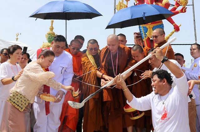 ทั้งนี้ “หลวงตาม้า” วัดถ้ำเมืองนะ ท่านเมตตาเดินทางมาเป็นประธานพิธีฝ่ายสงฆ์ นั่งอธิษฐานจิตลงแผ่นทอง และ ธาตุวัตถุมงคลต่างๆ พร้อมคณะสงฆ์ที่ติดตามมา หลายรูป และ พระครูเกษมถาวรคุณ เจ้าอาวาสวัดบางเลน ร่วมพระสงฆ์ 9 รูป สวดเจริญพุทธมนต์ ชยันโต”ชัยชนะจงบังเกิด” ตลอดพิธีเททอง จนแล้วเสร็จ…
